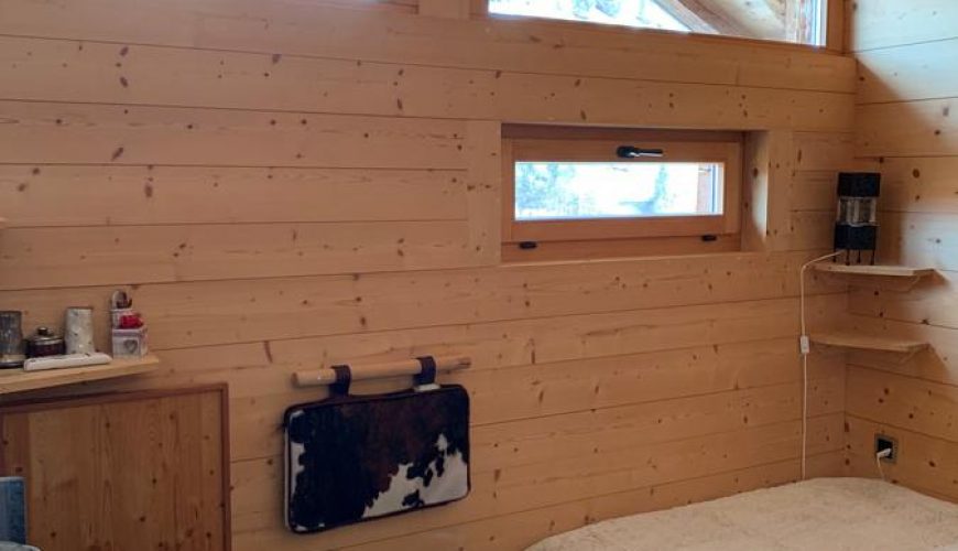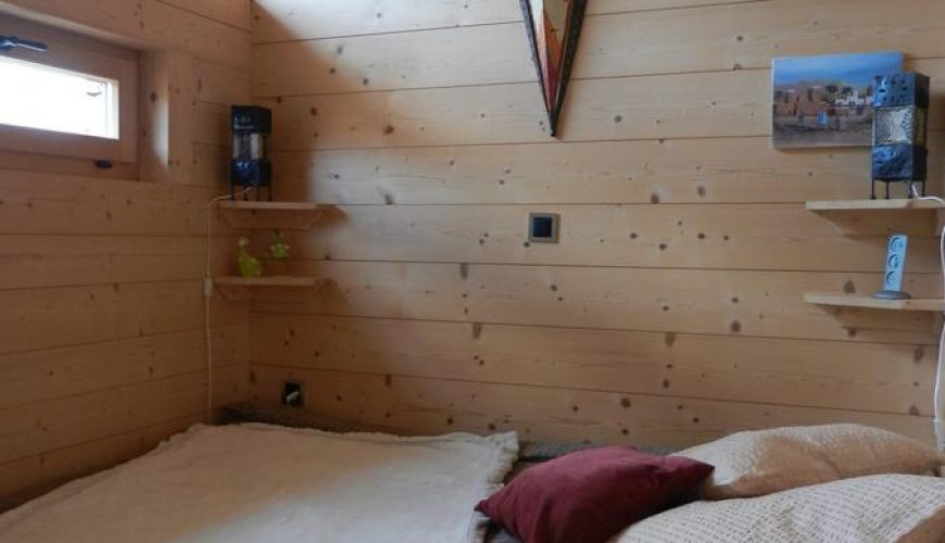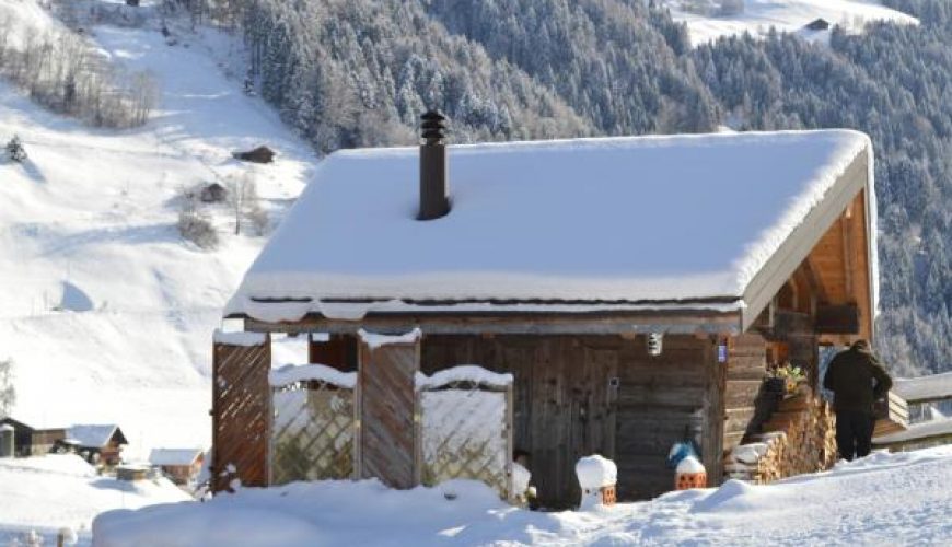 Une chambre indépendante dans un ancien mazot, salle de bains attenante et grand lit 2 places vue sur les montagnes de Val d’Illiez